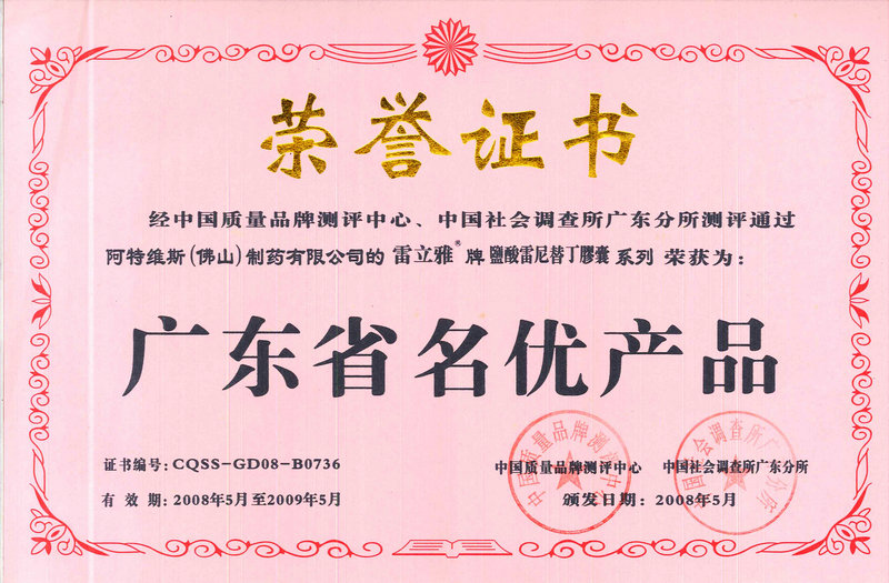雷立雅-2008年廣東省名優(yōu)產(chǎn)品