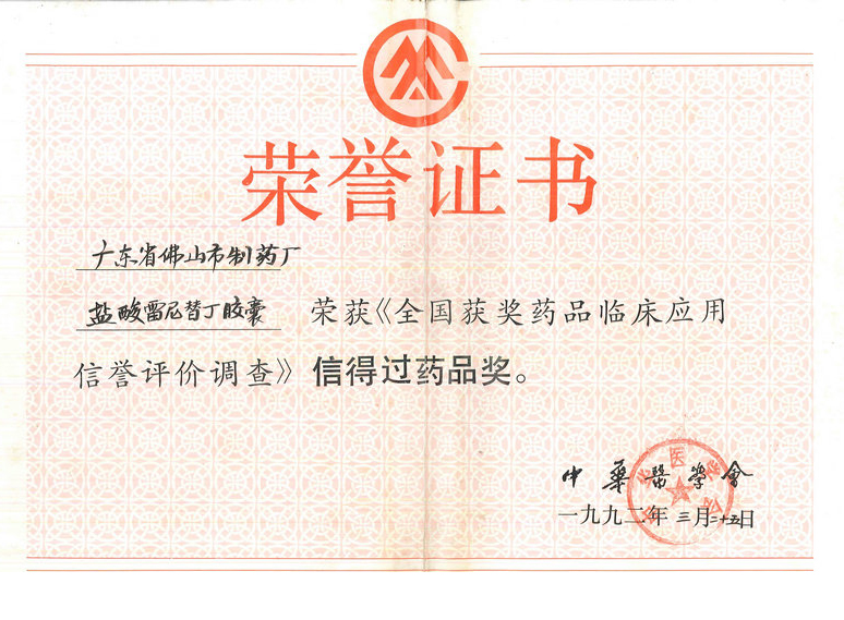 福天樂(lè )-1994年醫藥科技進(jìn)步二等獎