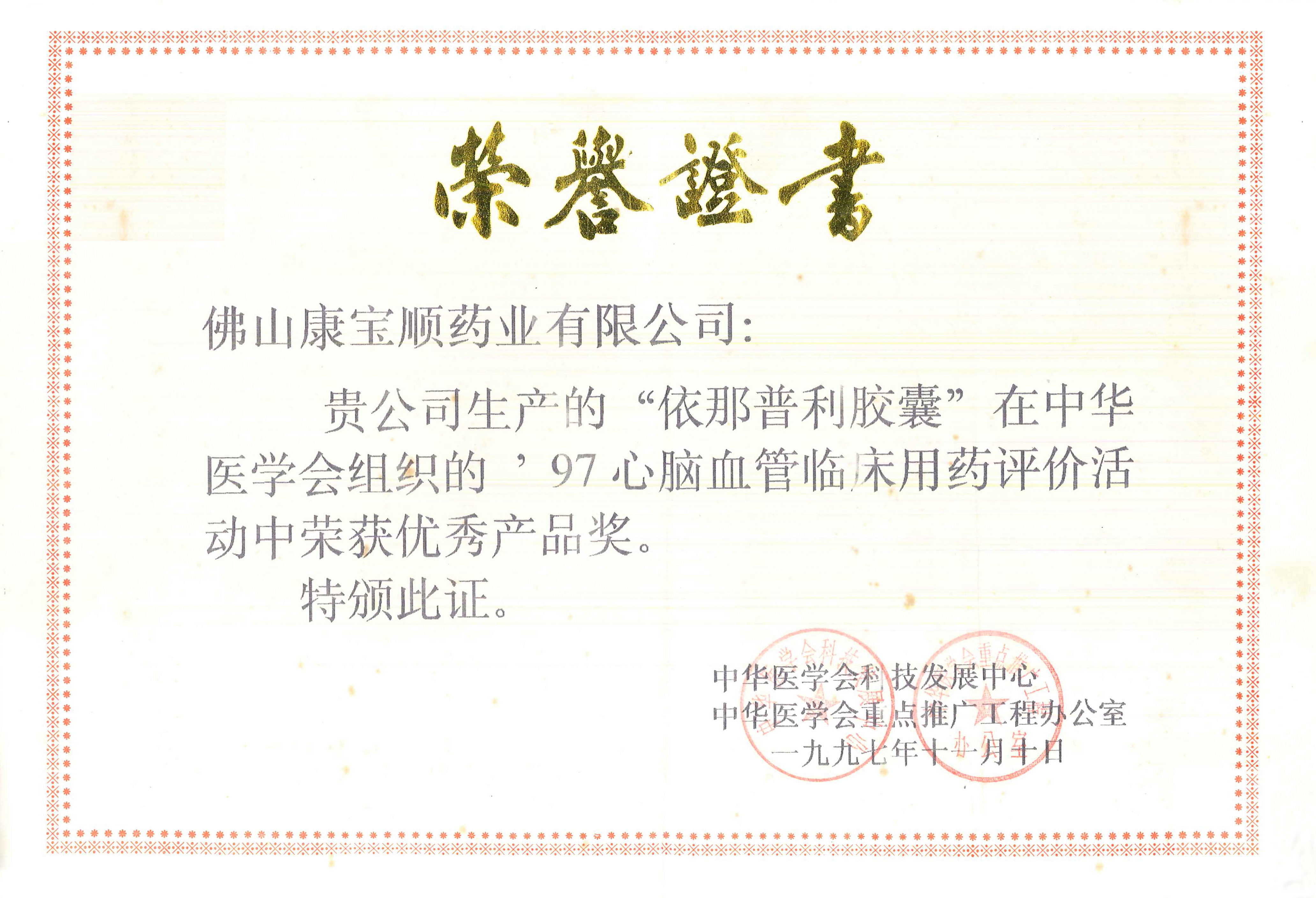 福天樂(lè )-1997年優(yōu)秀產(chǎn)品獎