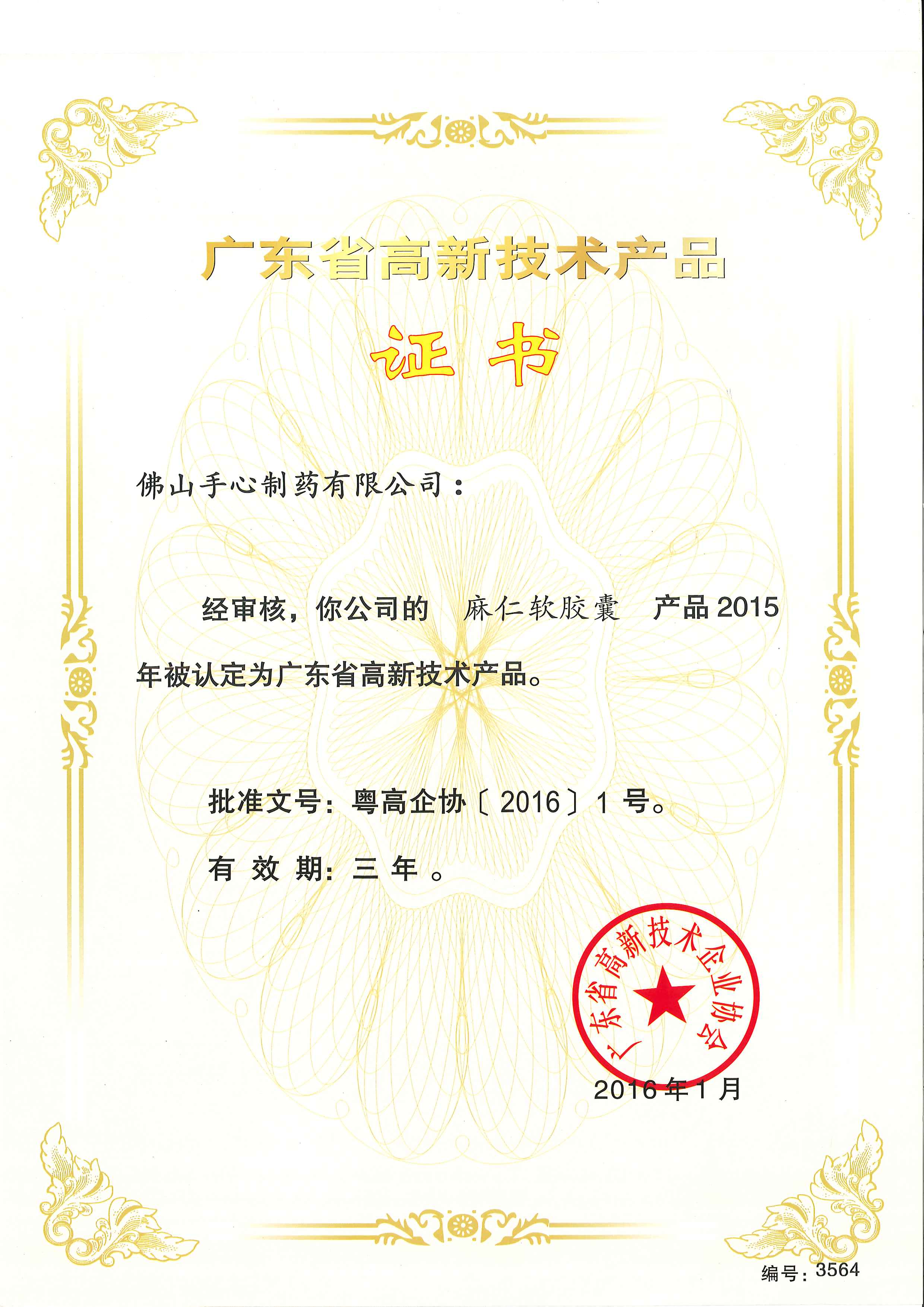 麻仁軟膠囊-2015年高新技術(shù)產(chǎn)品