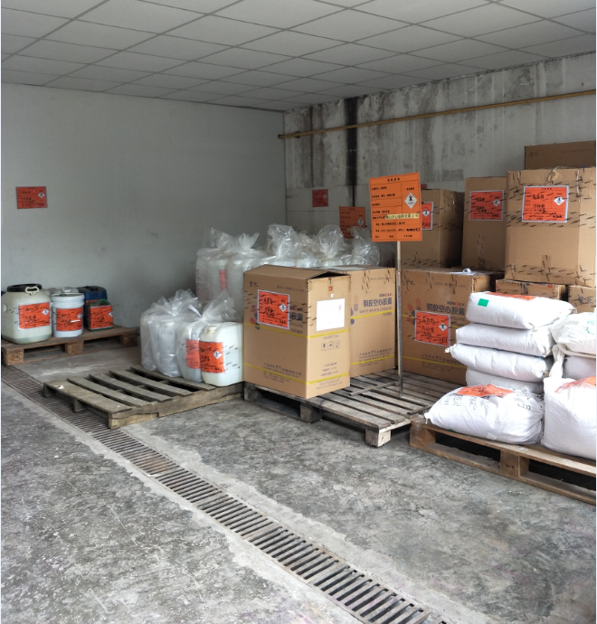 △危廢品倉:倉內標有醒目的標簽標識,并嚴格按照分類(lèi)整齊排列、密封存儲。倉庫設有專(zhuān)門(mén)的管理人員,進(jìn)倉與出倉都有做好登記與記錄的工作。