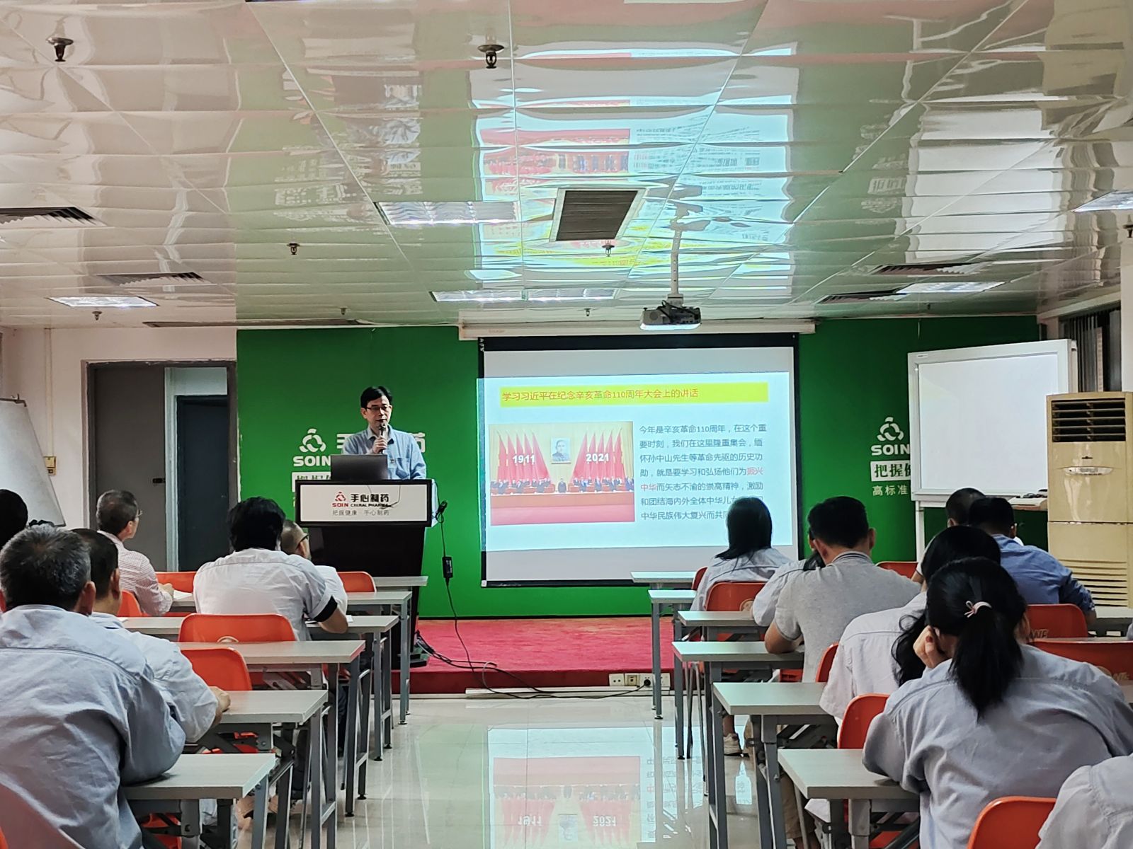 為了學(xué)習和弘揚孫中山先生等革命先驅為振興中華而矢志不渝的崇高精神,激勵和團結海內外全體中華兒女為實(shí)現中華民族偉大復興而共同奮斗,把握歷史大勢,掌握歷史主動(dòng),10月28日,佛山手心制藥有限公司黨委第一書(shū)記溫國堅為我司開(kāi)講黨課《學(xué)習習近平在紀念辛亥革命110周年大會(huì )上的講話(huà)》。