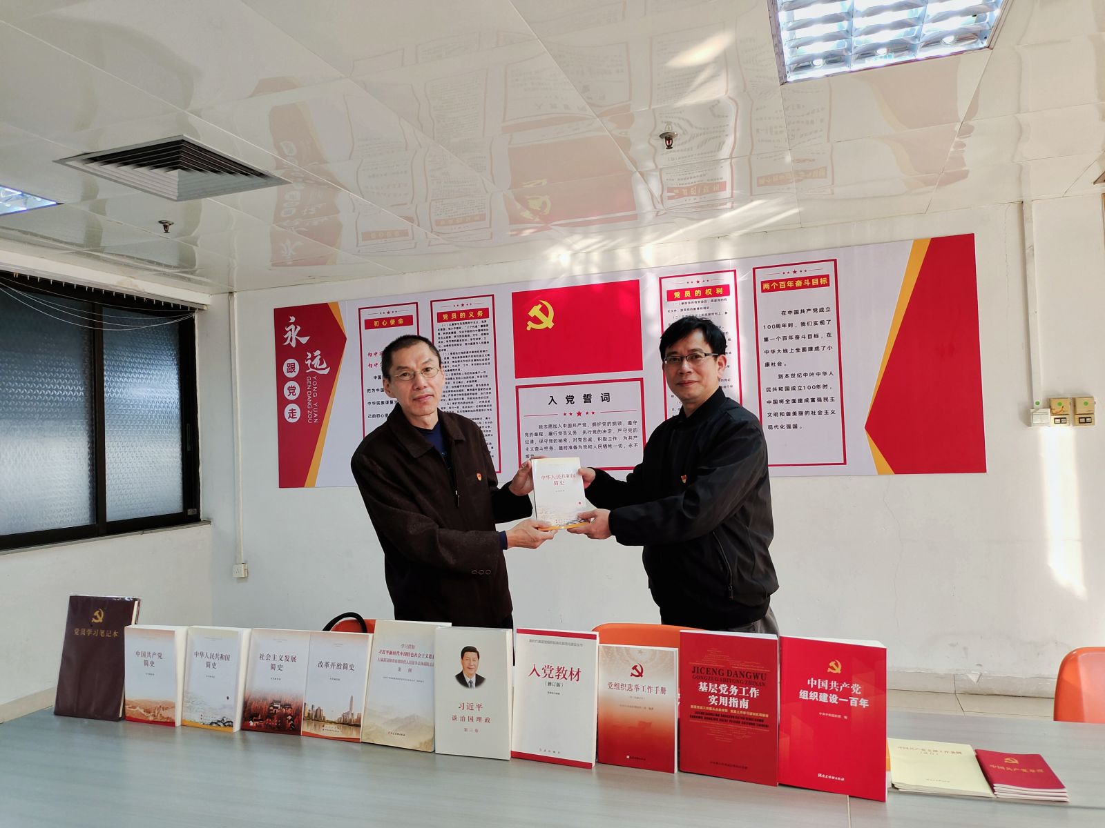 為了鼓勵公司黨員、團員、群眾更好地了解學(xué)習黨史,第一書(shū)記溫國堅為公司黨組織贈送書(shū)本和學(xué)習筆記本共50余本,希望通過(guò)閱讀,能夠引導大家學(xué)史明理、學(xué)史增信、學(xué)史崇德、學(xué)史力行。