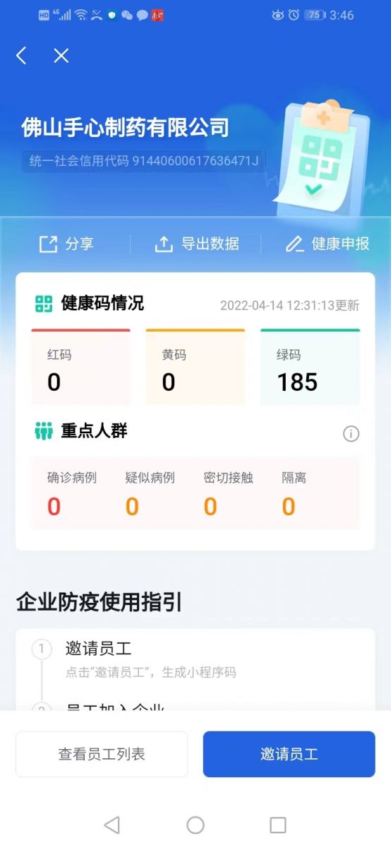 △佛山手心員工及時(shí)到“粵商通”小程序進(jìn)行個(gè)人健康申報