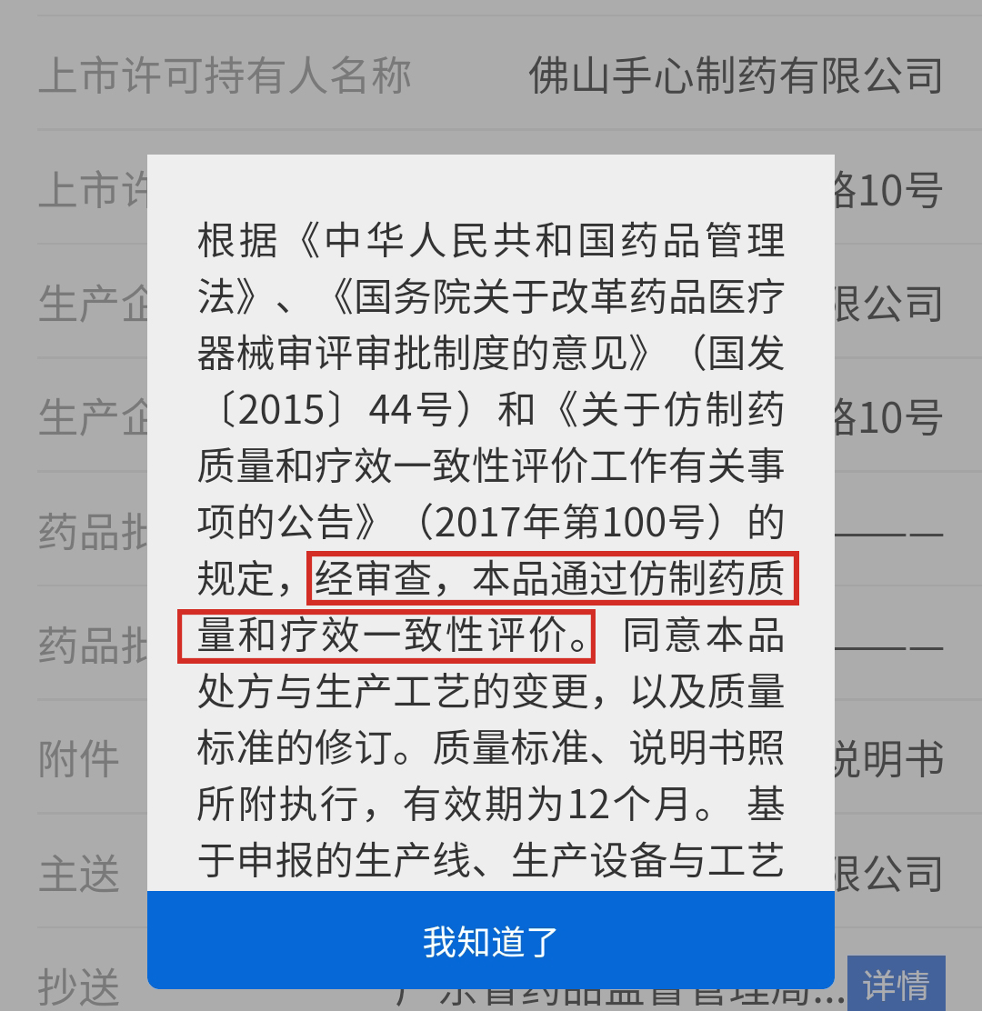 這是佛山手心制藥有限公司繼多潘立酮片之后第二個(gè)通過(guò)仿制藥質(zhì)量和療效一致性評價(jià)的產(chǎn)品。