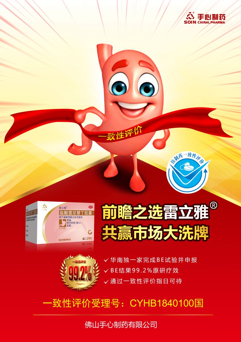 佛山手心制藥始終按照國際領(lǐng)先工藝生產(chǎn)雷立雅®,與參比制劑質(zhì)量和療效一致,在抗酸藥及抗潰瘍病藥市場(chǎng)傲立雄頭。
