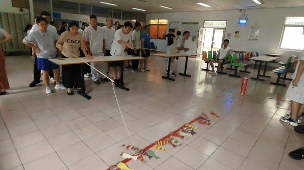 連續三屆保留的團體游戲項目。這次的比賽形式是車(chē)輪接力式跳大繩,紀錄由車(chē)間2隊打破!一共是60下!本輪比賽第一名輕松拿捏~