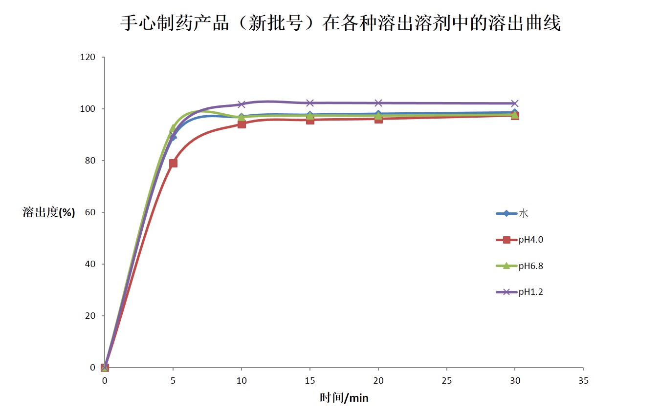 近日,佛山手心制藥有限公司(以下簡(jiǎn)稱(chēng)“手心制藥”)對旗下產(chǎn)品鹽酸雷尼替丁膠囊進(jìn)行了一系列溶出度試驗,采用在不同pH 溶出介質(zhì)中測定體外溶出曲線(xiàn)來(lái)評價(jià)藥物內在質(zhì)量差異。結果顯示,手心制藥生產(chǎn)的鹽酸雷尼替丁膠囊在5分鐘內溶出達70%以上,10分鐘達90%以上,高于或相當SANDOZ公司產(chǎn)品(FDA參比制劑),遠高于國內同類(lèi)產(chǎn)品,說(shuō)明產(chǎn)品起效迅速;且在各種pH環(huán)境中溶出均快速、一致,各時(shí)間點(diǎn)RSD(相對標準偏差,數據越小代表數據不離散,差異越小)較小,個(gè)體間療效差異小,能做到粒粒有效,療效穩定??焖偃艹霰硎居行С煞帜芸焖俦晃改c道吸收而發(fā)揮藥效,從而緩解胃潰瘍、十二指腸潰瘍患者的疼痛,并保持穩定的血藥濃度,持續作用。另外,實(shí)驗還測定了近效期(有效期6個(gè)月內)和新生產(chǎn)(生產(chǎn)6個(gè)月內)的2個(gè)批次的雷尼替丁膠囊,它們體外溶出曲線(xiàn)基本一致,說(shuō)明該產(chǎn)品有效期內質(zhì)量穩定,不潮解變質(zhì)。